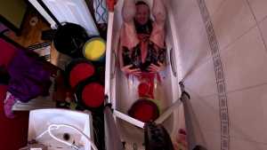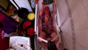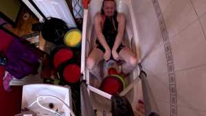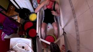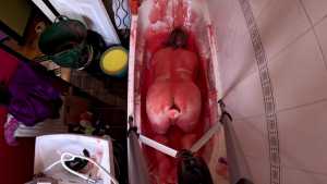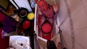He masturbates, lying down in the gunge on his back, and on his front, where you can watch him fuck himself with a big fat dildo.