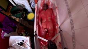 Over the head pouring; and head-dunking, while the swimsuit is removed, and rung out over his face.